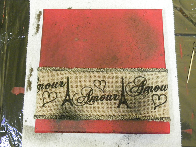 | The spray color (brown with sparkles) did not spray evenly across the canvas, but kind of blurbed into blotches (see the bottom of the canvas). This is the one I am not sure I can salvage. |